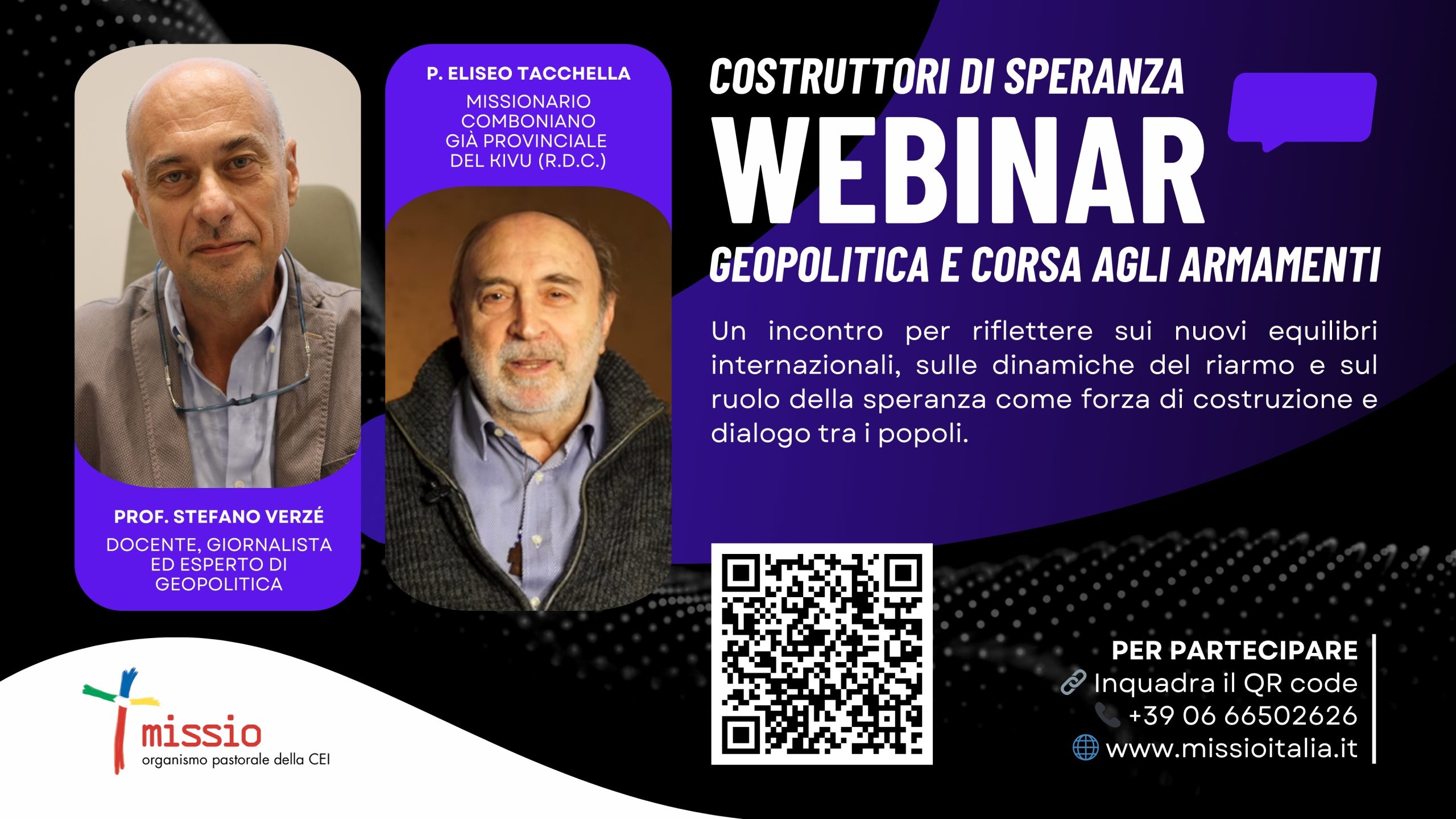 Seguirà la testimonianza di padre Eliseo Tacchella, missionario comboniano già provinciale del Kivu (Repubblica Democratica del Congo), che racconterà l’impatto diretto di tali tensioni sui territori africani e sulle popolazioni civili che vivono in condizioni di guerra e instabilità.
