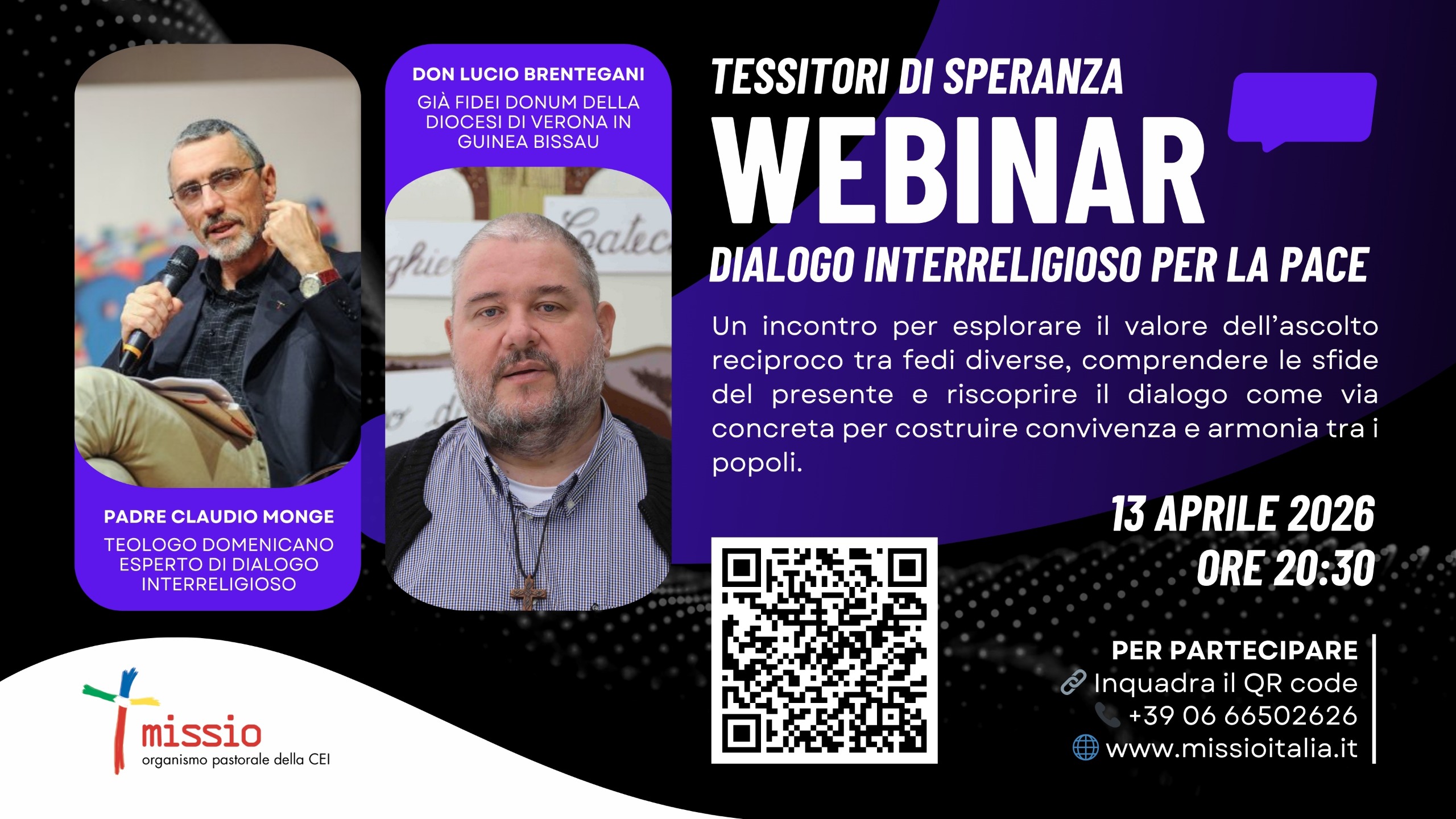 Ne parleranno padre Claudio Monge, domenicano, teologo, esperto di dialogo interreligioso, e don Lucio Brentegani, già fidei donum della diocesi di Verona in Guinea Bissau.