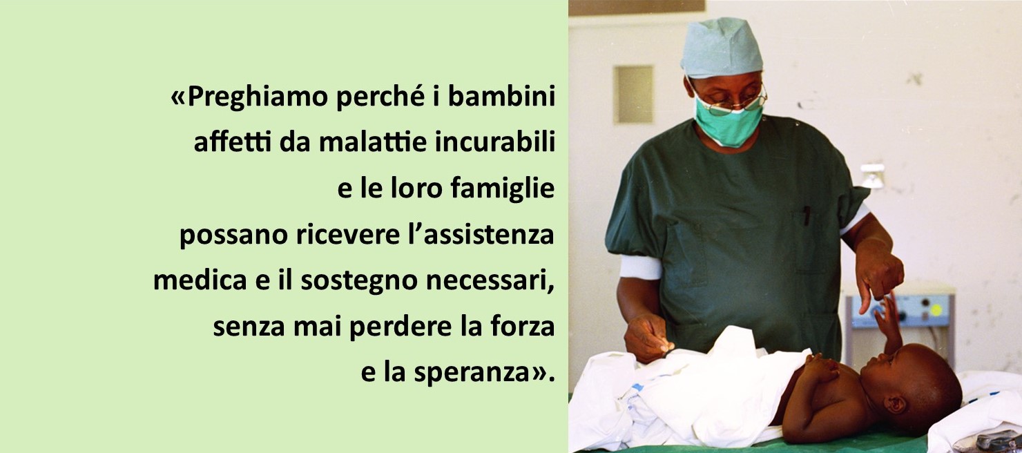 «Preghiamo perché i bambini affetti da malattie incurabili e le loro famiglie possano ricevere l’assistenza medica e il sostegno necessari, senza mai perdere la forza e la speranza».